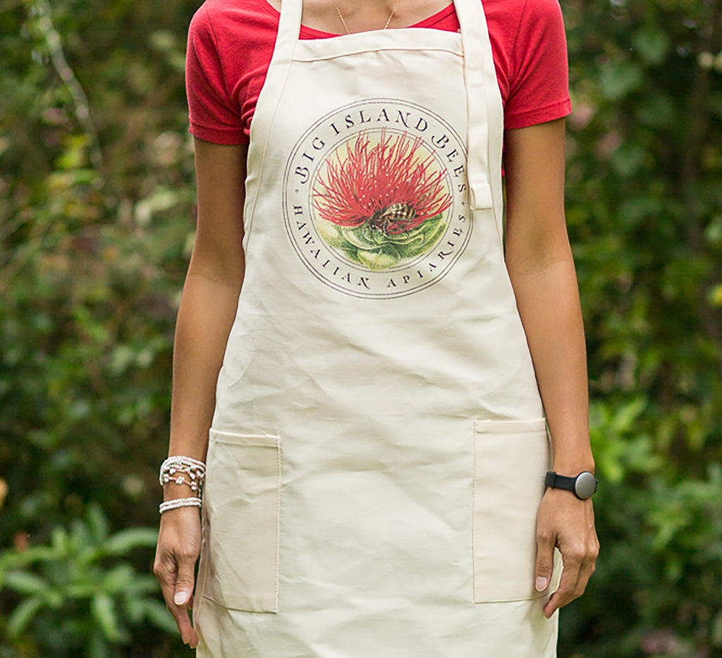 Cook up some honey muffins and stay clean with this stylish Big Island logo apron. Made of heavy duty 100% cotton, this apron covers well and has convenient deep pockets. Wear it in the kitchen, shop or garden for a handy handsome cover up.